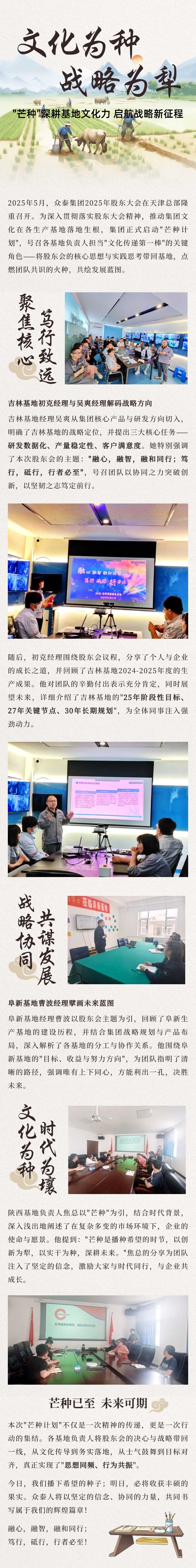 5月,為深入貫徹落實(shí)股東大會(huì)精神,推動(dòng)集團(tuán)文化在各生產(chǎn)基地落地生根,集團(tuán)正式啟動(dòng)"芒種計(jì)劃",號(hào)召各基地負(fù)責(zé)人擔(dān)當(dāng)