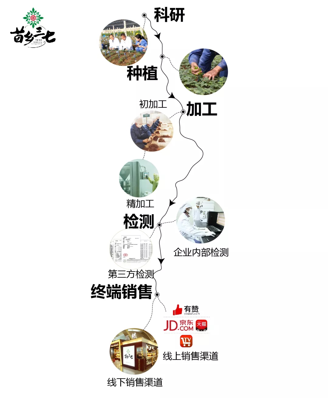 ? ? ? ?苗鄉(xiāng)三七為保證三七產(chǎn)品品質(zhì),構(gòu)建從科研、種植、加工、銷(xiāo)售、服務(wù)為一體的全產(chǎn)業(yè)鏈,奠定做高品質(zhì)三七的實(shí)業(yè)基礎(chǔ)。
