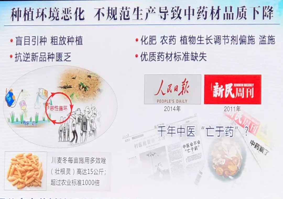 ? ? ? ?會(huì)上強(qiáng)調(diào)因盲目引種、粗放種植,抗逆新品種匱乏,化肥農(nóng)藥濫用等問(wèn)題,導(dǎo)致現(xiàn)今中藥材品質(zhì)下降,這已成為中藥材行業(yè)面臨的重要問(wèn)題。