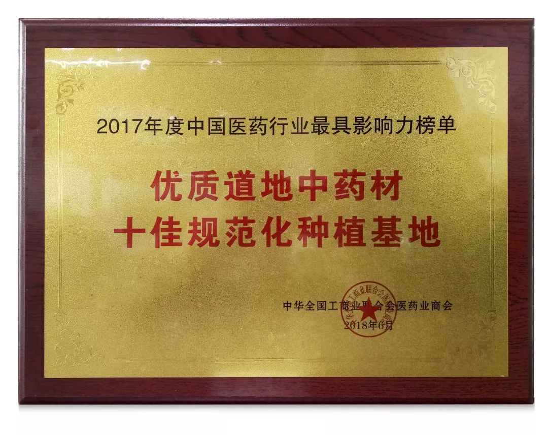 “優(yōu)質(zhì)道地中藥材十佳規(guī)范化種植基地”