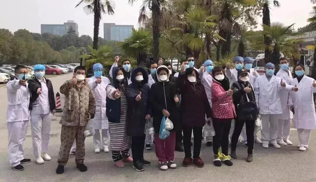 武漢市金銀潭醫(yī)院南樓一病區(qū),首批以中醫(yī)藥或中西醫(yī)結(jié)合方式治愈的8名確診患者出院。