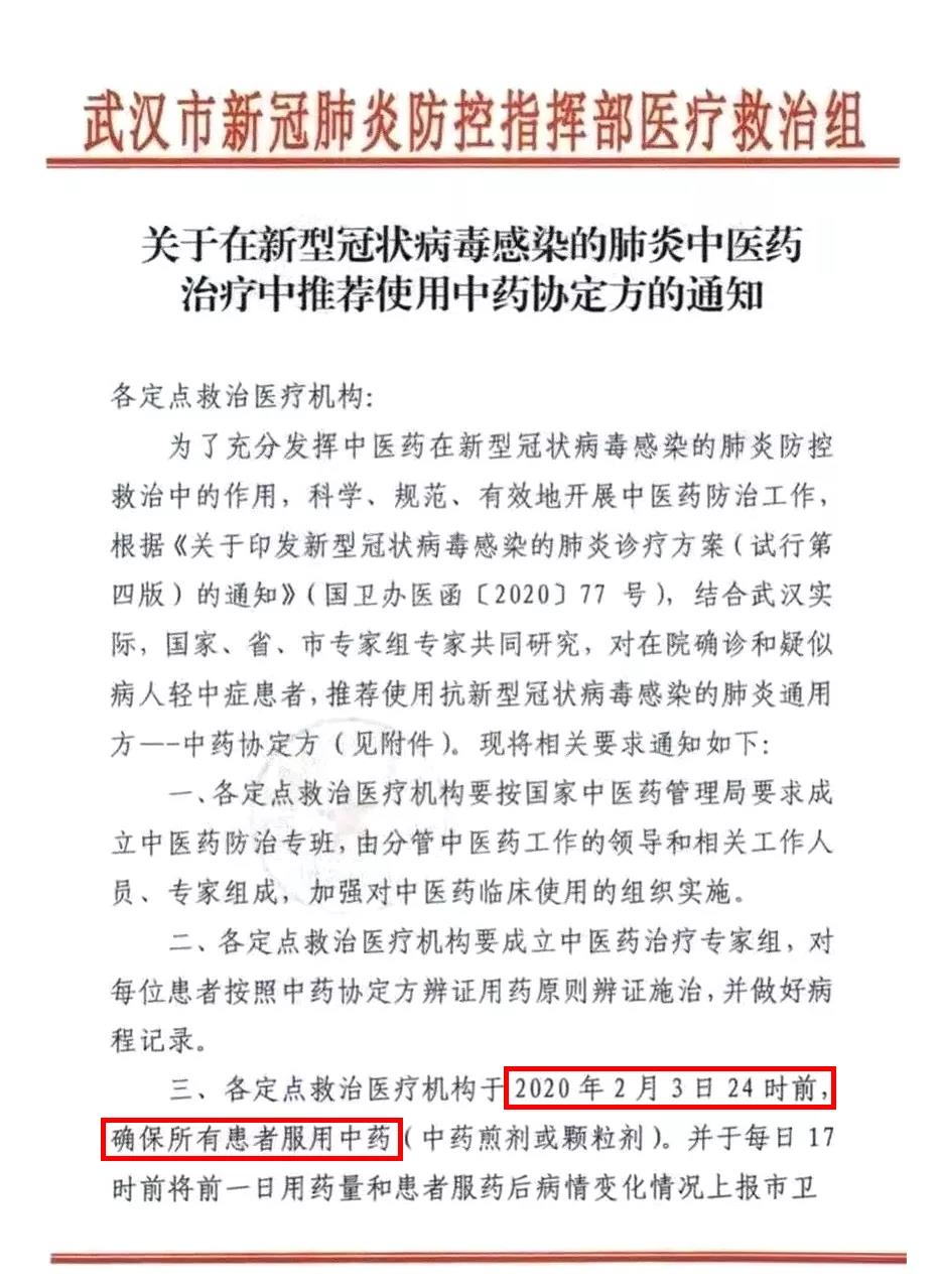 在2020年2月2日武漢市新冠肺炎防控指揮部醫(yī)療救治小組關(guān)于推薦使用中藥的協(xié)定方名單中二處使用三七,并強(qiáng)調(diào)2020年2月3日24時前確保所有患者使用中藥。