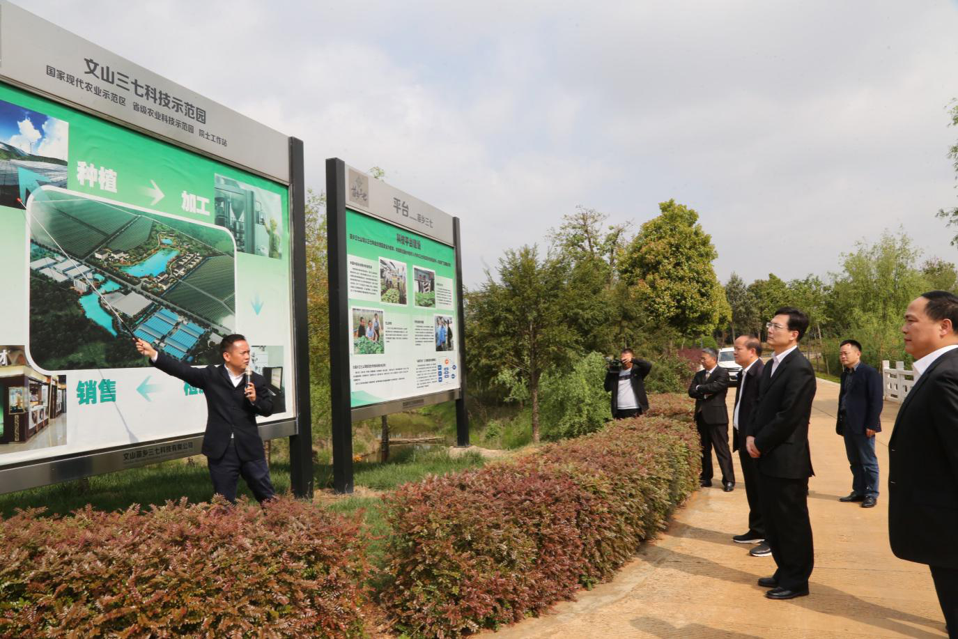 李副主席表示:中醫(yī)中藥是中華民族的瑰寶,中醫(yī)中藥是一體的,沒有好中藥就沒有中醫(yī),中藥最重要的是優(yōu)質(zhì)原料,近年來種源、環(huán)境、土壤、農(nóng)藥、化學(xué)肥料等影響和制約中藥材的發(fā)展??戳嗣玎l(xiāng)三七的發(fā)展情況,苗鄉(xiāng)三七以科研為導(dǎo)向,切實(shí)解決種植實(shí)際生產(chǎn)需求的模式和方向很好,在規(guī)?;?、標(biāo)準(zhǔn)化管理方面做得很優(yōu)秀,尤其是規(guī)?;B鎖農(nóng)場(chǎng)和工程平臺(tái)式的科研模式很突出,也看到了中國中藥種植發(fā)展的希望。同時(shí)上海也將盡力支持苗鄉(xiāng)三七發(fā)展,發(fā)揮工業(yè)技術(shù)和醫(yī)學(xué)研究?jī)?yōu)勢(shì),尤其在產(chǎn)品精深加工方面。