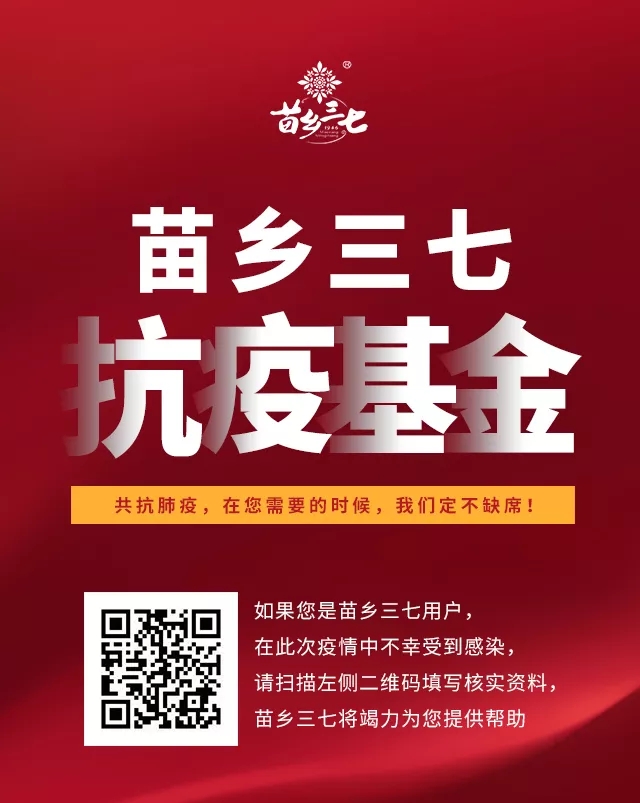 因此,我們向湖北疫區(qū)捐贈87萬元三七產(chǎn)品;同時成立150萬元抗疫基金專項幫助服用苗鄉(xiāng)三七的用戶!