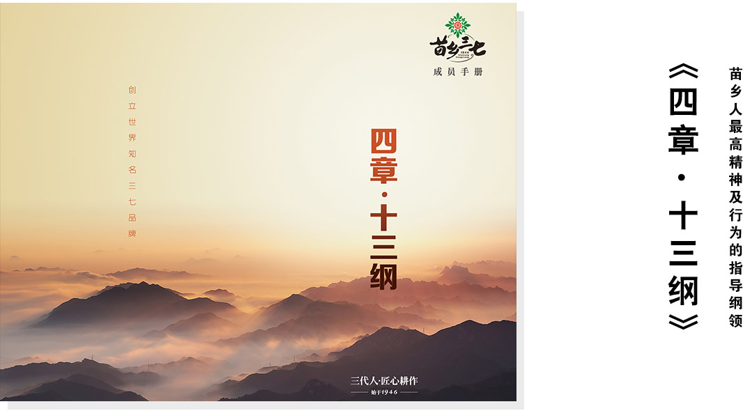 苗鄉(xiāng)立志讓三七走向世界,通過種植、加工出高效、安全、便利的高品質(zhì)三七,為人們的健康服務,并改善當?shù)亟?jīng)濟與社會。通過對三七全產(chǎn)業(yè)鏈的建設,創(chuàng)新并強化影響產(chǎn)業(yè)有效、安全、持續(xù)發(fā)展的關鍵環(huán)節(jié),讓其平行領先②于行業(yè);構建良好的三七產(chǎn)業(yè)生態(tài)環(huán)境,實現(xiàn)三七從種源-田間-車間-用戶全面可控管理;建立獨特而完善的核心競爭優(yōu)勢,保障用戶能使用優(yōu)質(zhì)、可信的三七產(chǎn)品,并促進三七產(chǎn)業(yè)健康持續(xù)的發(fā)展。